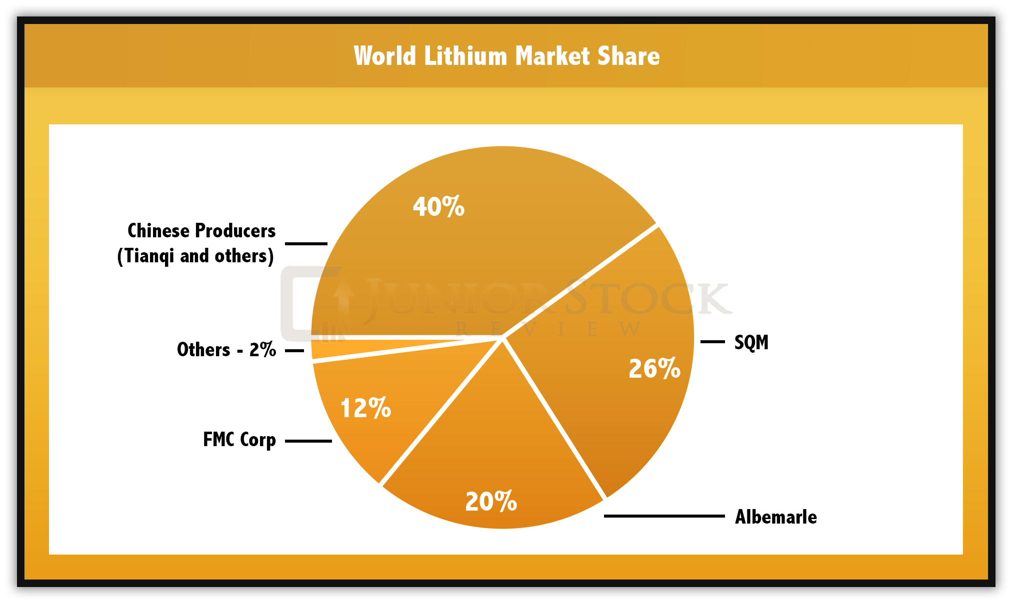 B: The lithium market is very interesting. For a metal that, I believe, is going to be in high demand over the next couple of years, it’s hard to find and put together the information for supply and demand dynamics. The market is still very small. There are four main players. You’re talking about concentrations of production coming predominantly out of the lithium triangle in South America – that’s Chile, Argentina and Bolivia, and the main hard rock source from Australia. The rest of the world is in a race to catch up.