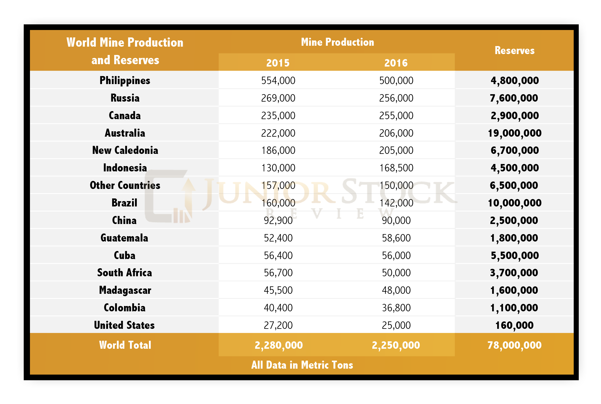199,203.4 tonnes of Ni / 1,957,000 tonnes of Ni (2016 mine production) = 10% of 2016 mine production
