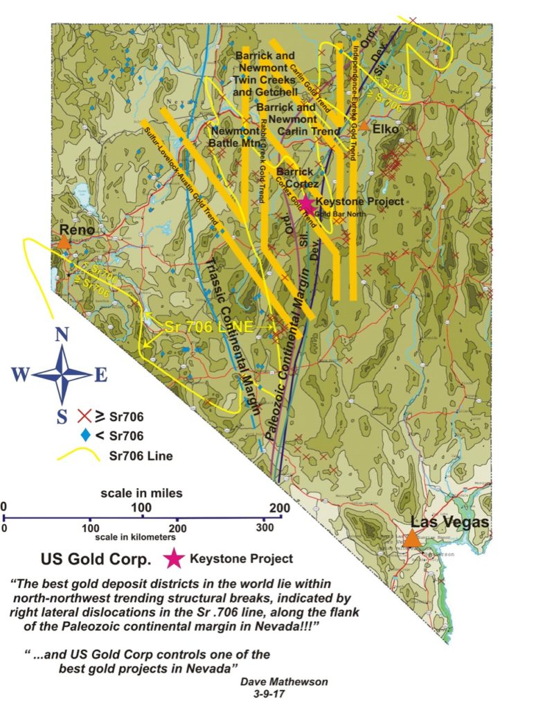 U.S. Gold Corp.’s flagship Keystone project is located on the Cortez Trend, just south of Nevada Gold Mines’ Cortez Hill mine.