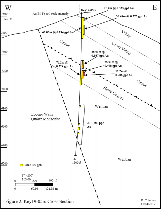 19-05rc intercepted 67.06m of 0.194 g/t gold, which includes intervals of 9.14m of 0.333 g/t gold and 30.48m of 0.273 g/t gold.