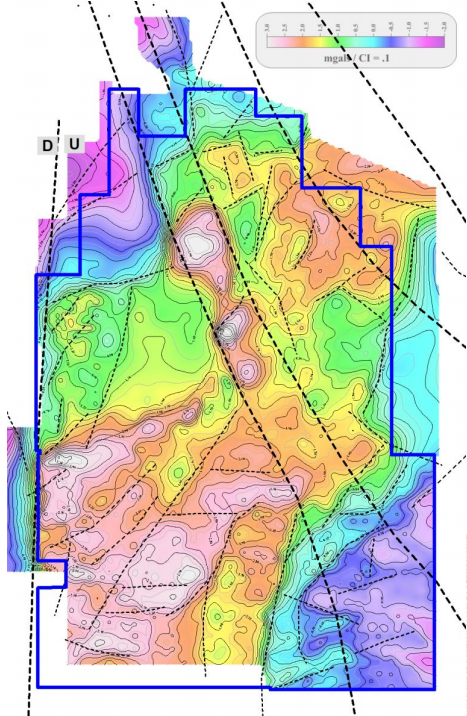 As the image demonstrates, the magnetics are interpreted to reveal a northwest striking structure. These structures have been confirmed by geological mapping and through geochemical testing.